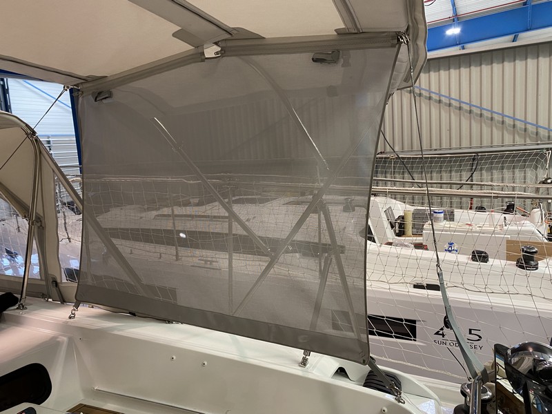 Starboard side, wooden table. Protection of the table ( canvas, fixings kit and manual).